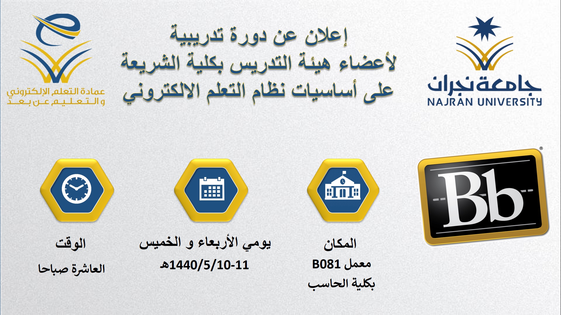null إعلان عن دورة تدريبية لأعضاء هيئة التدريس بكلية الشريعة (المستوى الأساسي)