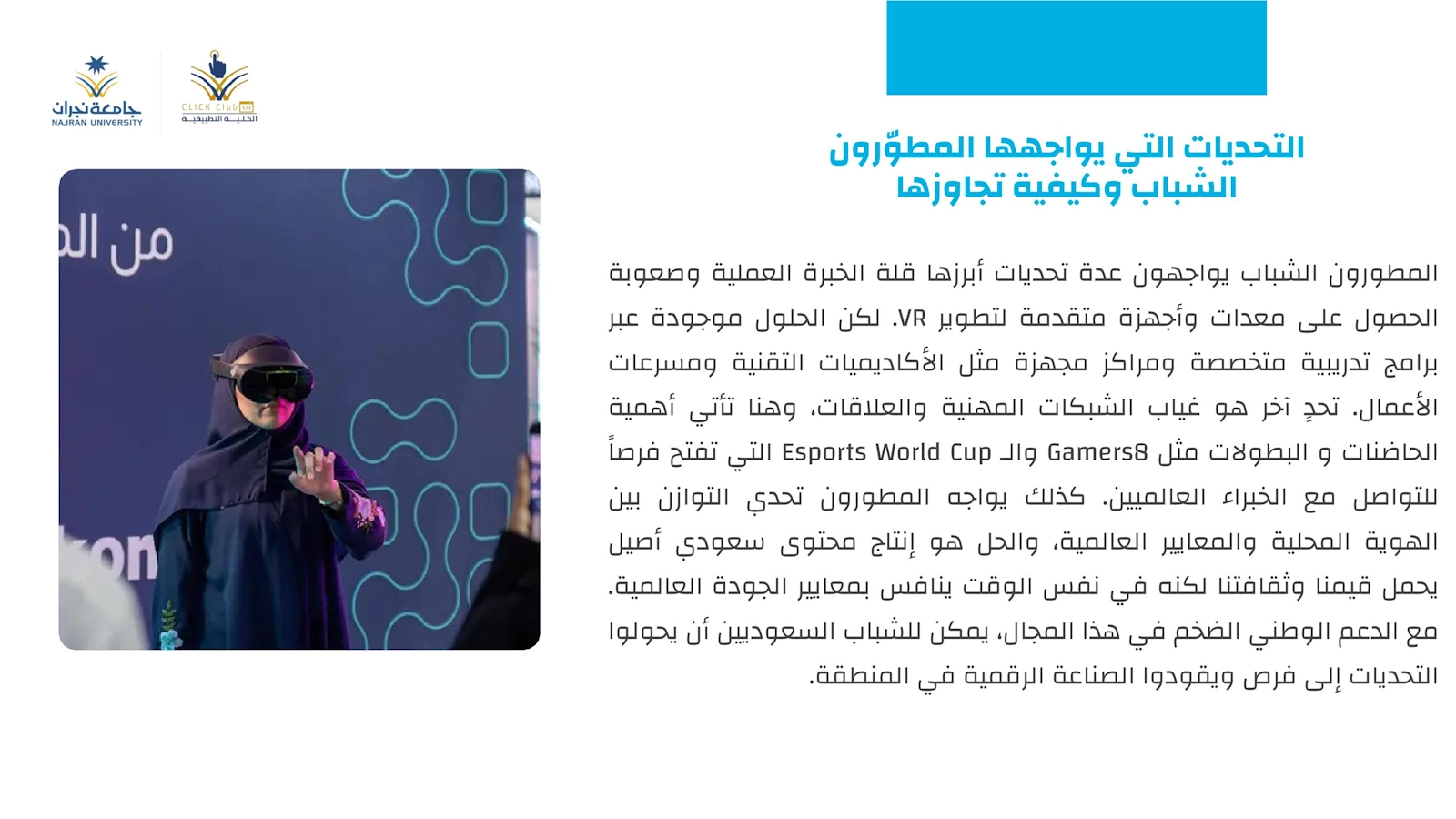 نادي كليك في الكلية التطبيقية يتنظم دورة تدريبية بعنوان " مستقبل الألعاب والواقع الافتراضي في السعودية " - الفصل الثاني 1447