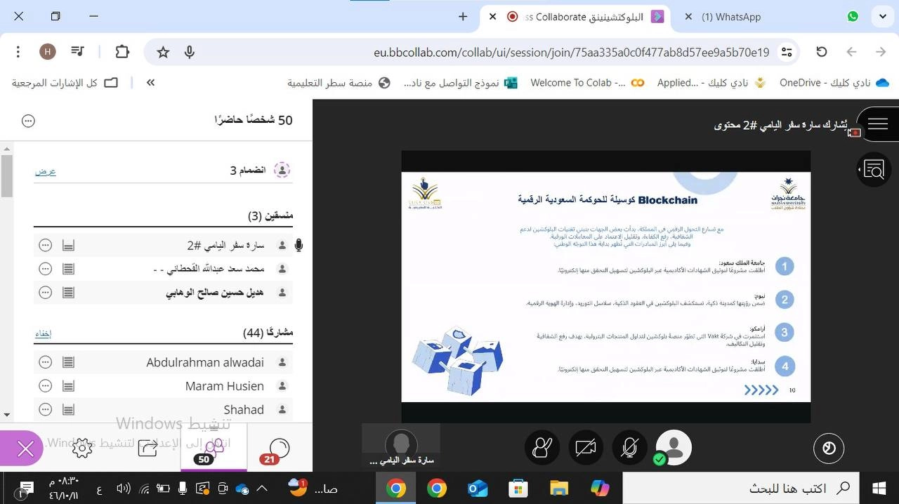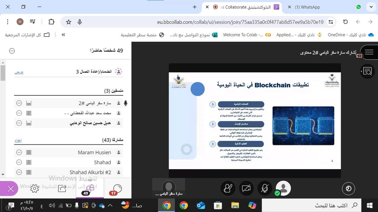 ضمن جهوده الرامية إلى مواكبة التطورات التقنية الحديثة، وتعزيز وعي الطلاب بالتقنيات الرقمية المستقبلية، نظم نادي كليك في الكلية التطبيقية دورة تدريبية بعنوان "اكتشف عالم الـBlockchain"، وذلك يوم الأربعاء 11 شوال 1446هـ، الموافق 9 أبريل 2026م. هدفت الدورة إلى تعريف المشاركين بأساسيات تقنية سلسلة الكتل (Blockchain)، وآلية عملها، ودورها المحوري في دعم التحول الرقمي، إلى جانب استعراض تطبيقاتها المتعددة في مجالات حيوية كالمجال المالي، والرعاية الصحية، وسلاسل الإمداد.
