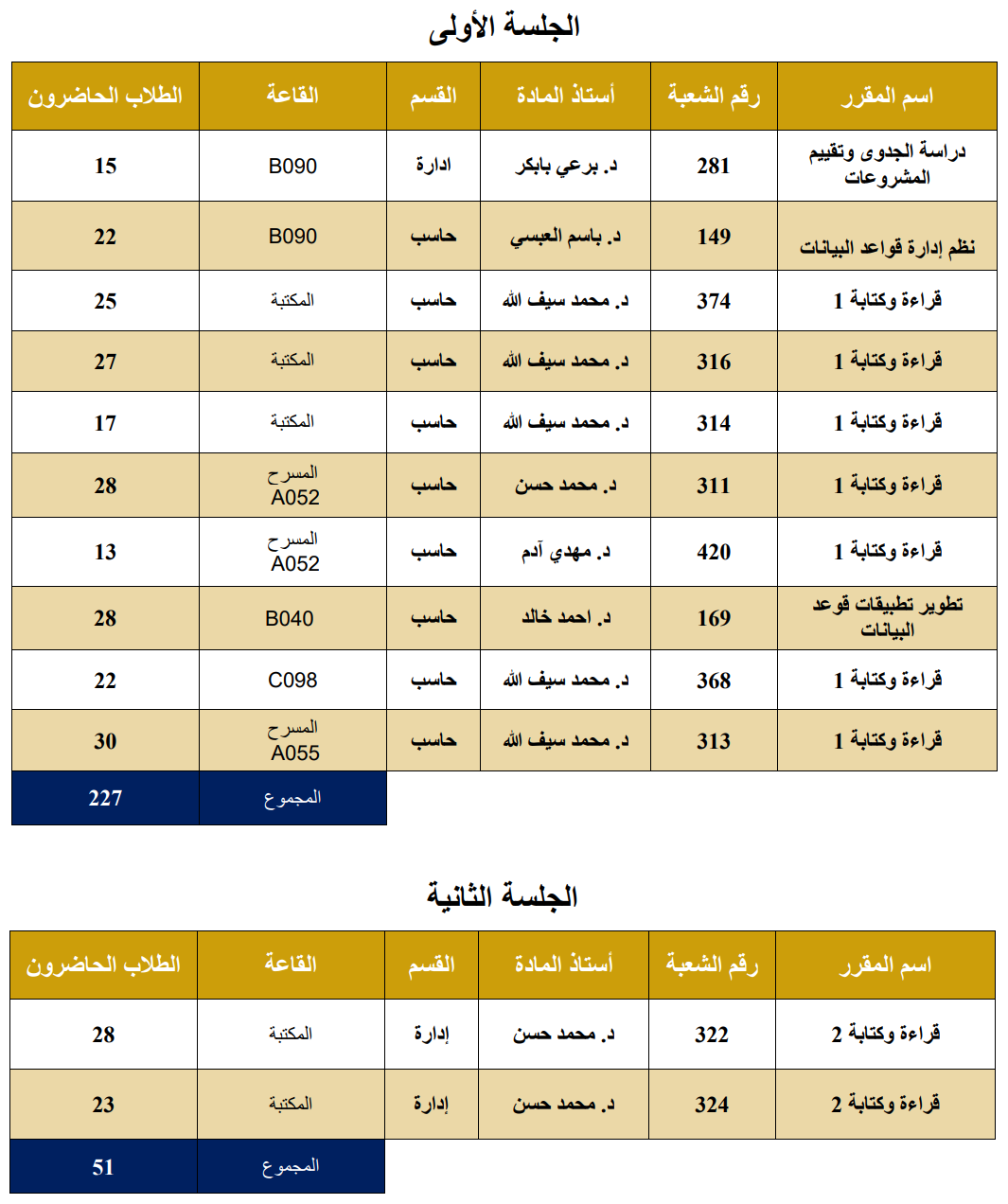 احصائيات المتابعات اليومية للاختبارات النهائية