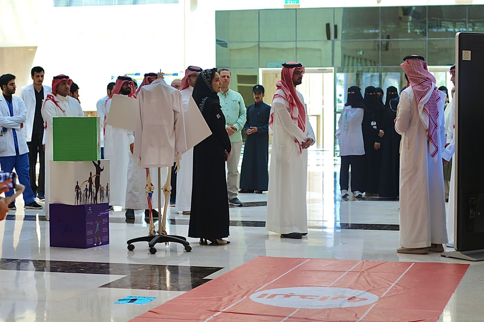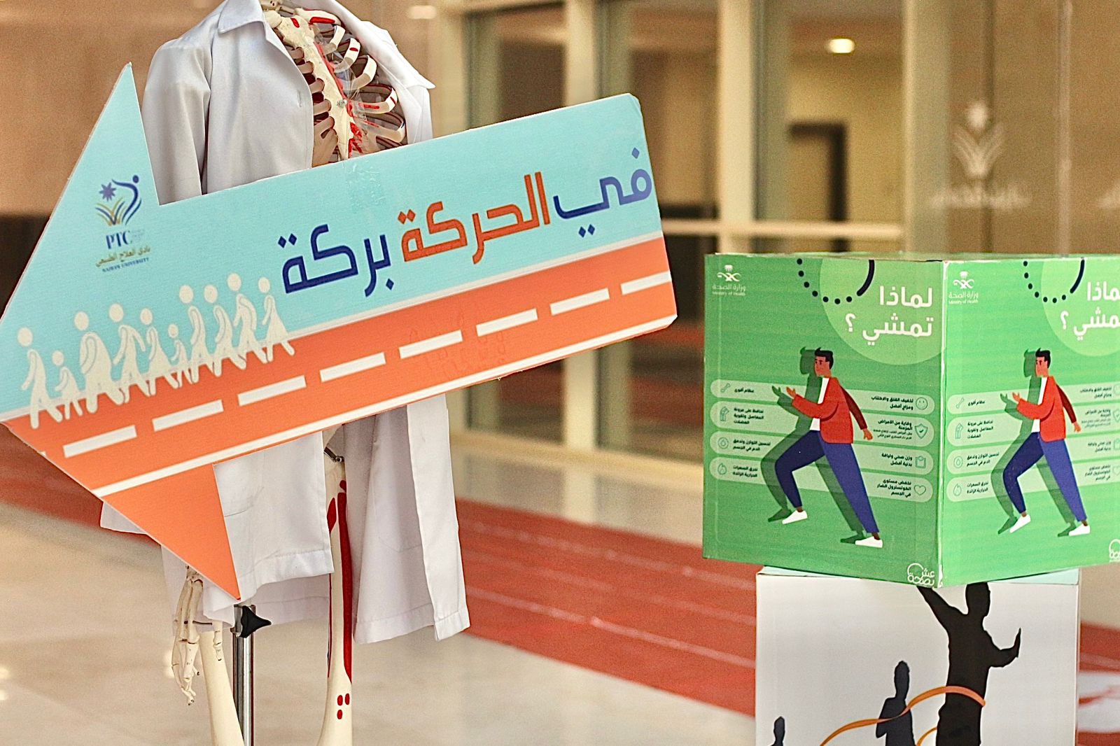 وتم فيه عرض مرئي لاكتساب عادات حركية صحية، كما تضمنت الفعالية مجموعة من الاركان التفاعلية للتوعية والتثقيف عن فوائد المشي، والمشاكل الشائعة للقدم والكاحل، وكيفية اختيار الحذاء المناسب للمشي وتجنب الاصابات خلال المشي.
