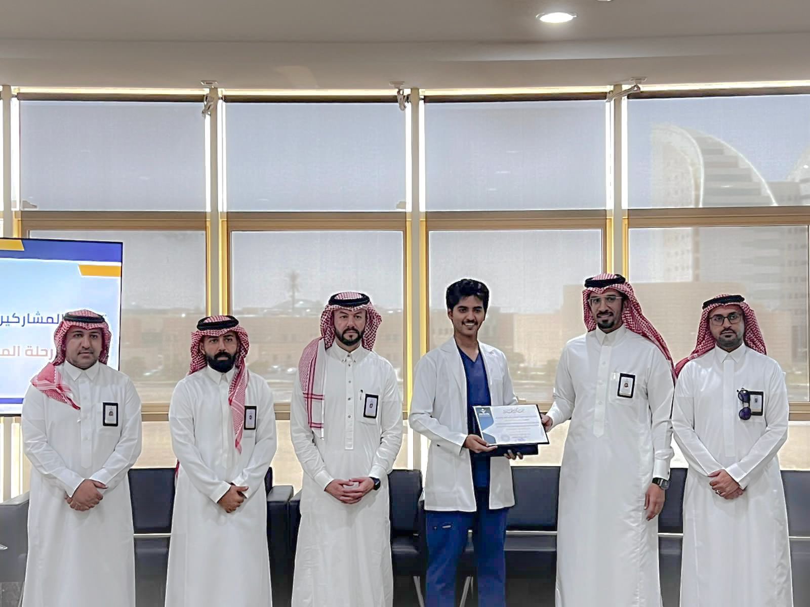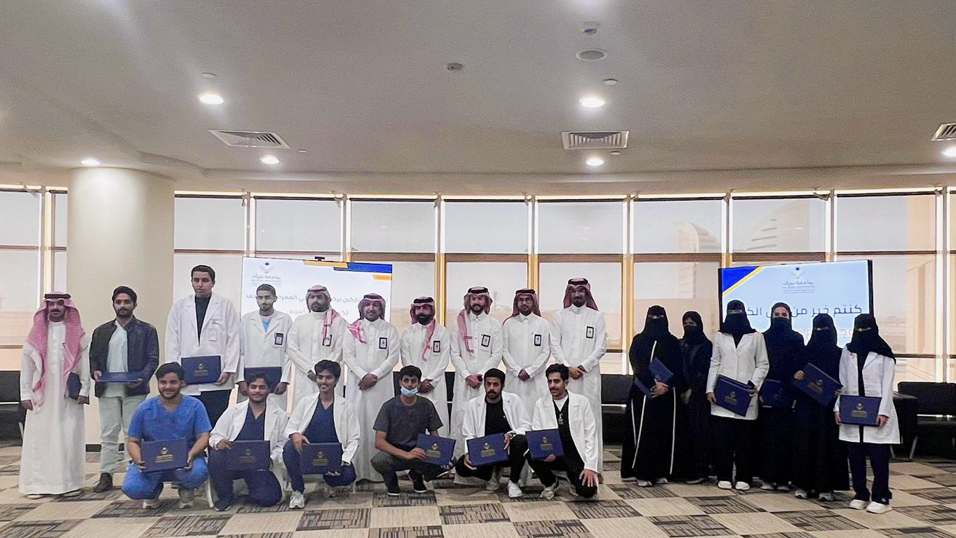 كرّم عميد الكلية الدكتور عادل الشهراني وبحضور وكيل الكلية للتطوير والجودة ورؤساء الاقسام؛ طلبة الكلية المشاركين في فعاليتي رحلة المستقبل مع طويق و المعرض المصاحب لكرنفال يوم التأسيس.