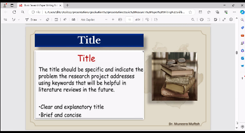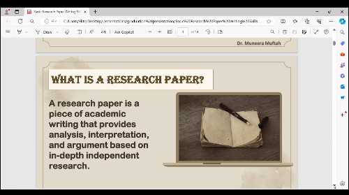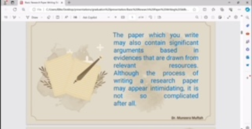 The Alumni Unit at the College of Languages and Translation held a workshop titled 'Basic Research Paper Writing Skills' on Wednesday, November 7, 2023. The workshop began with an introduction to research writing, discussing its content, objectives, and significance. It concluded with a discussion of key references and responses to the attendees' queries.