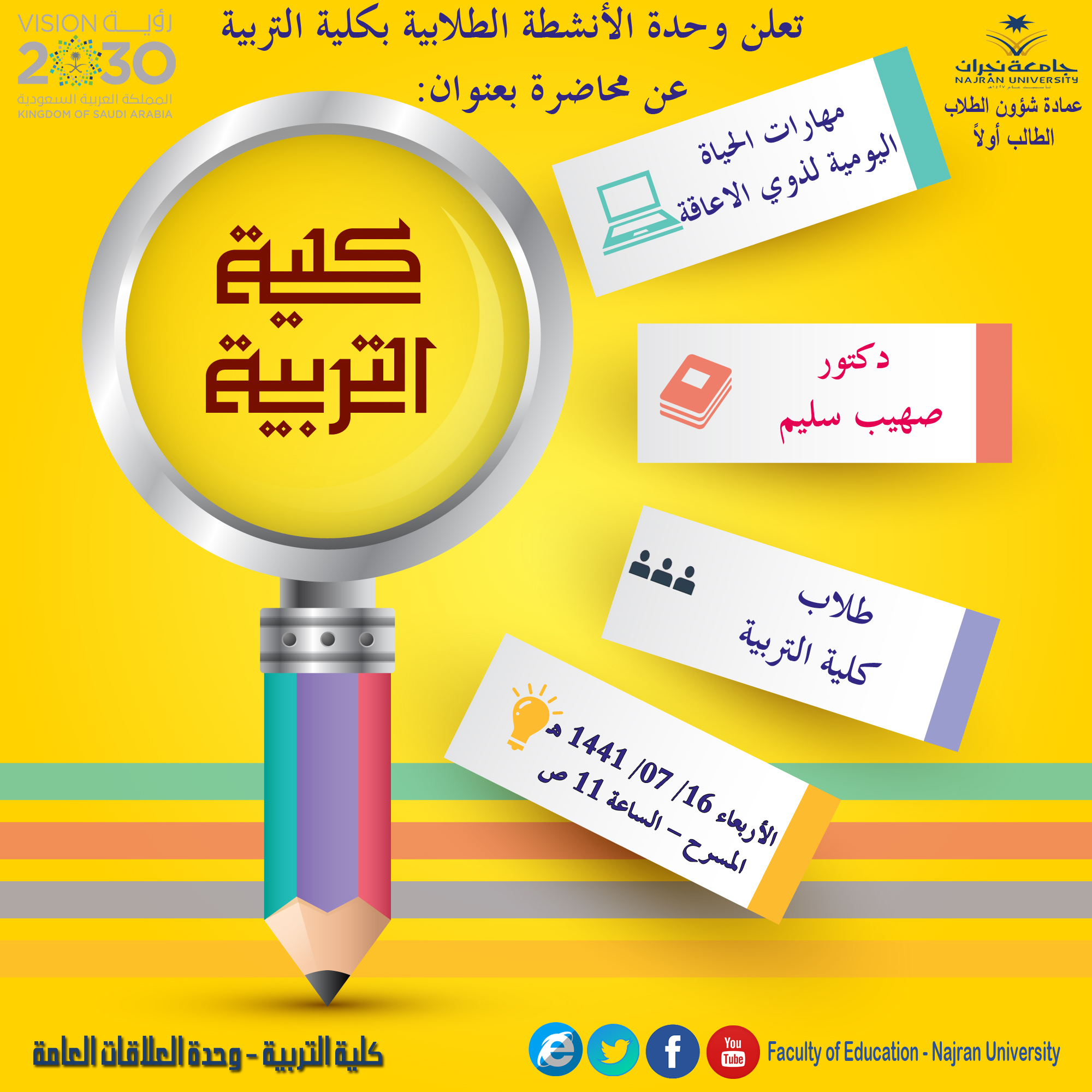 null تعلن وحدة الأنشطة الطلابية بكلية التربية عن إقامة محاضرة
