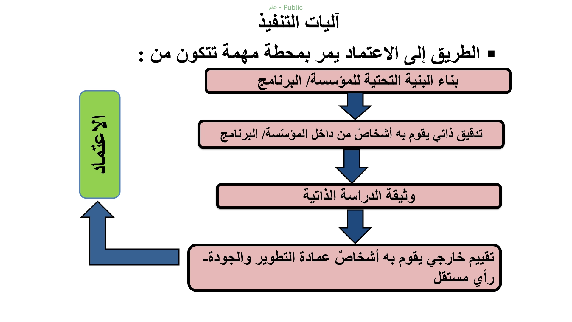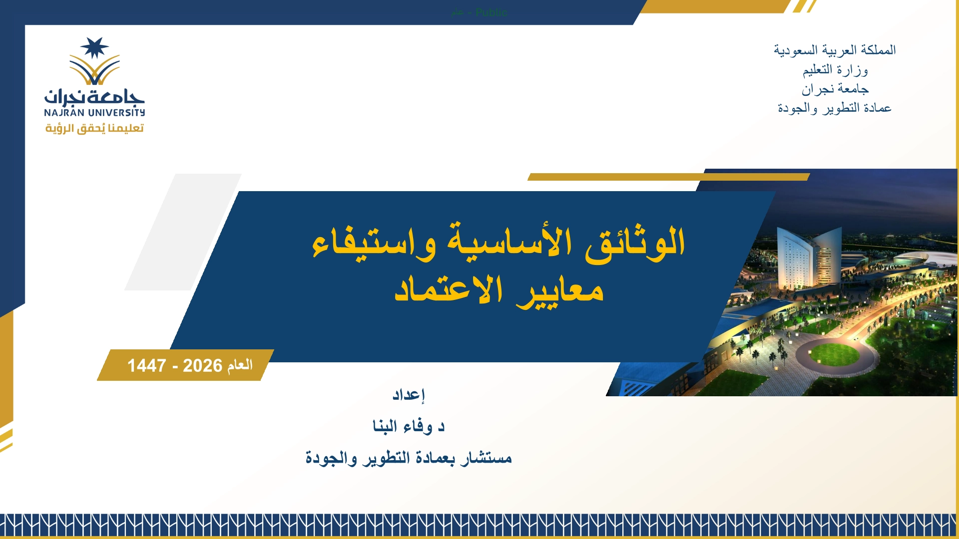 تضمّن اللقاء توضيح مراحل استيفاء متطلبات الاعتماد، بدءاً من بناء البنية التحتية للبرنامج، مروراً بالتقويم الذاتي وإعداد وثيقة الدراسة الذاتية، وانتهاءً بمراجعات الجودة الداخلية والرأي المستقل قبل التقدّم بطلب الاعتماد خلال المدة الزمنية المحددة. كما جرى التأكيد على أهمية الالتزام بالأدلة والإرشادات المعتمدة بجامعة نجران، ومن بينها دليل نظام الجودة، والدليل الاسترشادي، ونظام قياس نواتج التعلم، وآليات دعم الطلاب المتفوقين والموهوبين والمتعثرين.