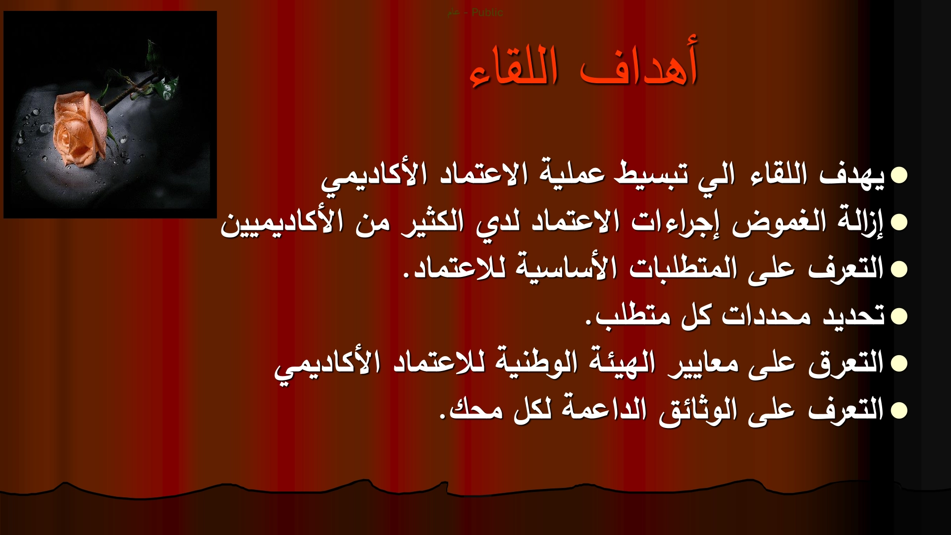 تناول اللقاء تبسيط مفهوم الاعتماد الأكاديمي وأنواعه، وبيان الفرق بين الاعتماد المؤسسي والبرامجي، مع التركيز على دور الاعتماد في ضمان جودة التعليم ورفع موثوقية الشهادات ودعم فرص توظيف الخريجين واستكمال دراساتهم العليا، إضافة إلى تعزيز ثقافة التحسين المستمر داخل البرامج الأكاديمية.