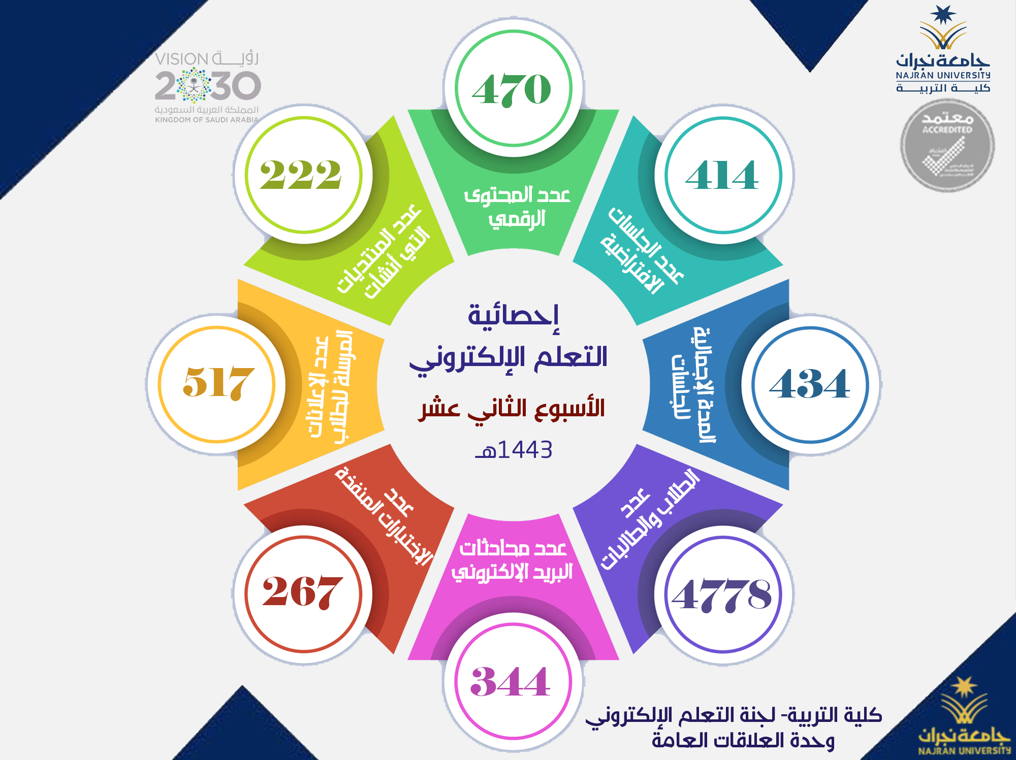 null إحصائية التعلم الإلأكتروني بكلية التربية - الاسبوع الثاني عشر 1443ه