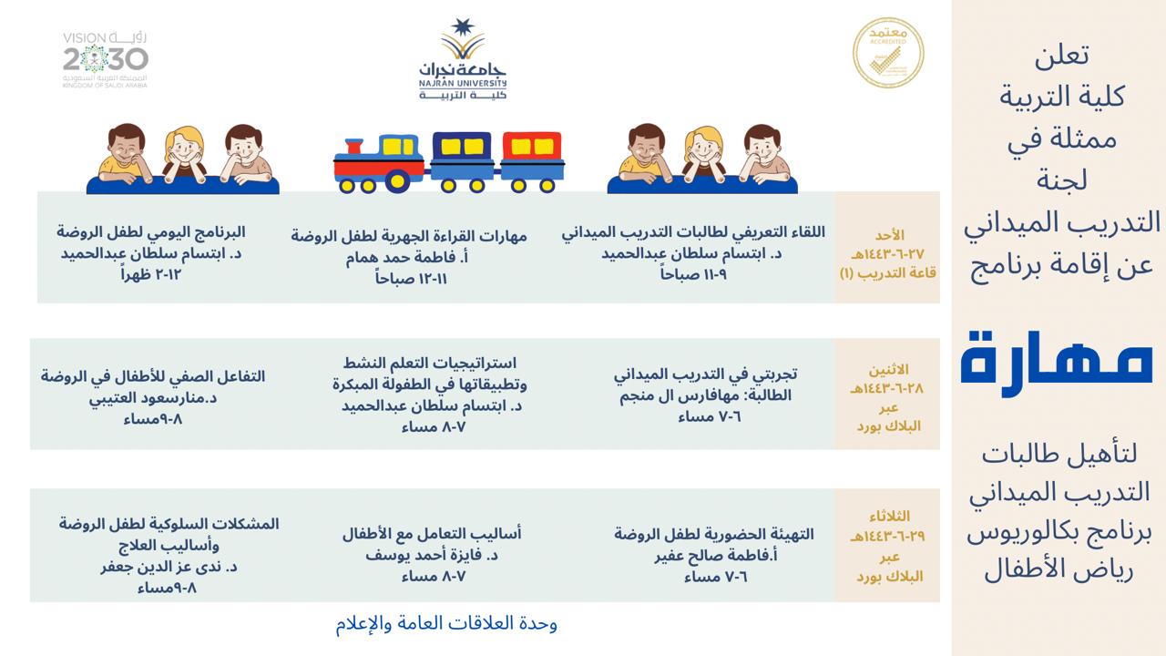 null تعلن كلية التربية ممثلة في لجنة التدريب الميداني عن إقامة برنامج مهارة