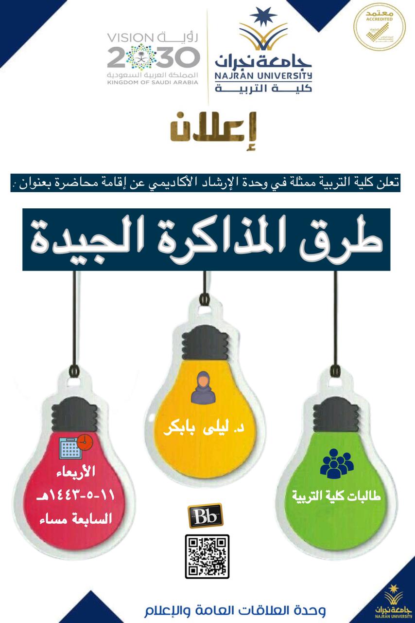 null تعلن كلية التربية ممثلة في وحدة الإرشاد الأكاديمي عن إقامة محاضرة