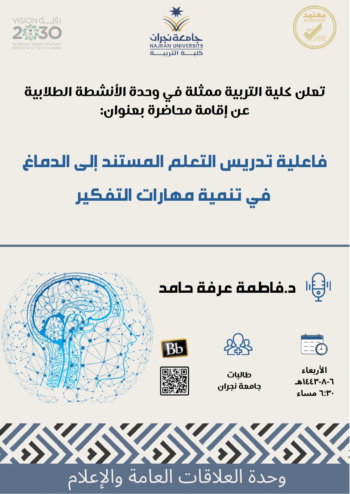 null تعلن كلية التربية ممثلة وحدة الأنشطة الطلابية عن إقامة محاضرة
