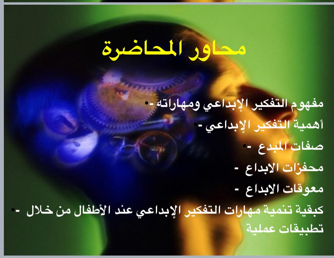 null محاضرة لطالبات كلية التربية عن تنمية مهارات التفكير الإبداعي عند الأطفال من خلال المناهج الدراسية