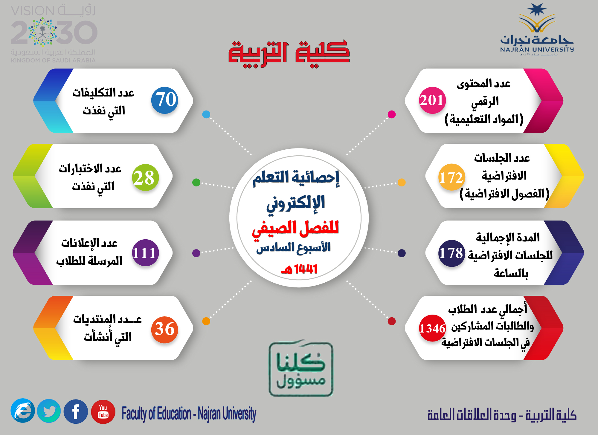 null التقرير الأسبوعي السادس للتعلم الإلكتروني للفصل الصيفي 1440- 1441 - كلية التربية