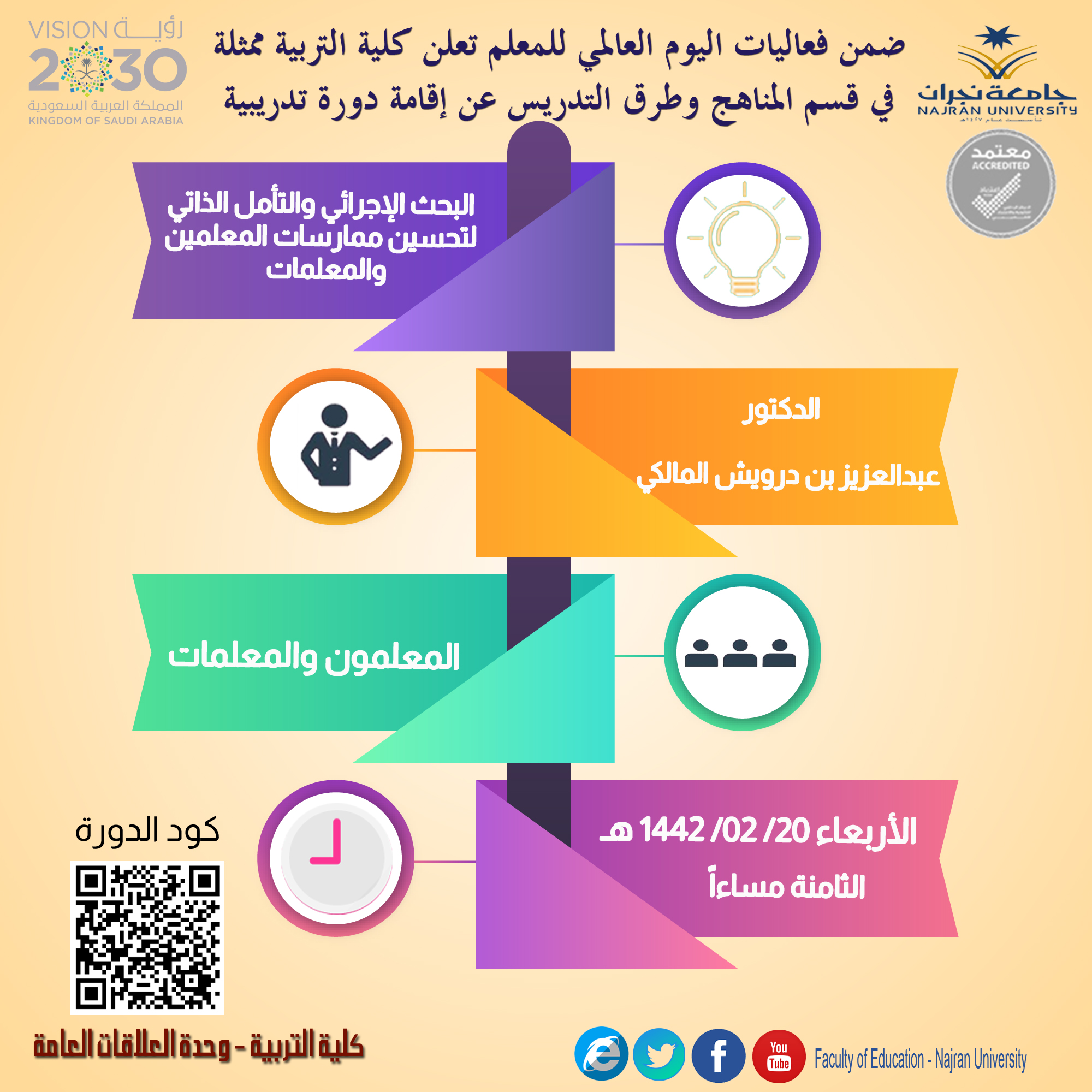 null ضمن فعاليات اليوم العالمي للمعلم تعلن كلية التربية ممثلة قي قسم المناهج وطرق التدريس عن إقامة دورة تدريبية