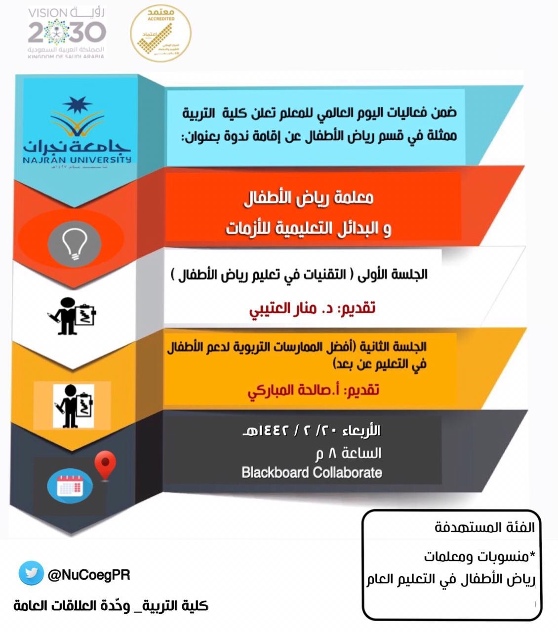 null ضمن فعاليات اليوم العالمي للمعلم تعلن كلية التربية ممثلة قي قسم رياض الأطفال عن إقامة ندوة
