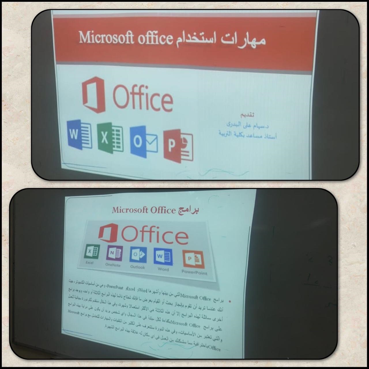 قدّمت لجنة التعلم الالكتروني بكلية التربية - شطر الطالبات - اليوم الثلاثاء 17/6/1441هـ ورشة عمل لطالبات كلية التربية، هدفت إلى تعريف الطالبات ببرامج ميكروسوفت واكسابهن مهارة استخدامها، كما تطرقت مقدمة الورشة د. سهام البدري - عضو هيئة التدريس بكلية التربية- إلى عدة محاور أبرزها: أنواع البرامج والتطبيق العملي عليها، مراحل تصميم وكتابة صفحة على برنامج word ، Power point.