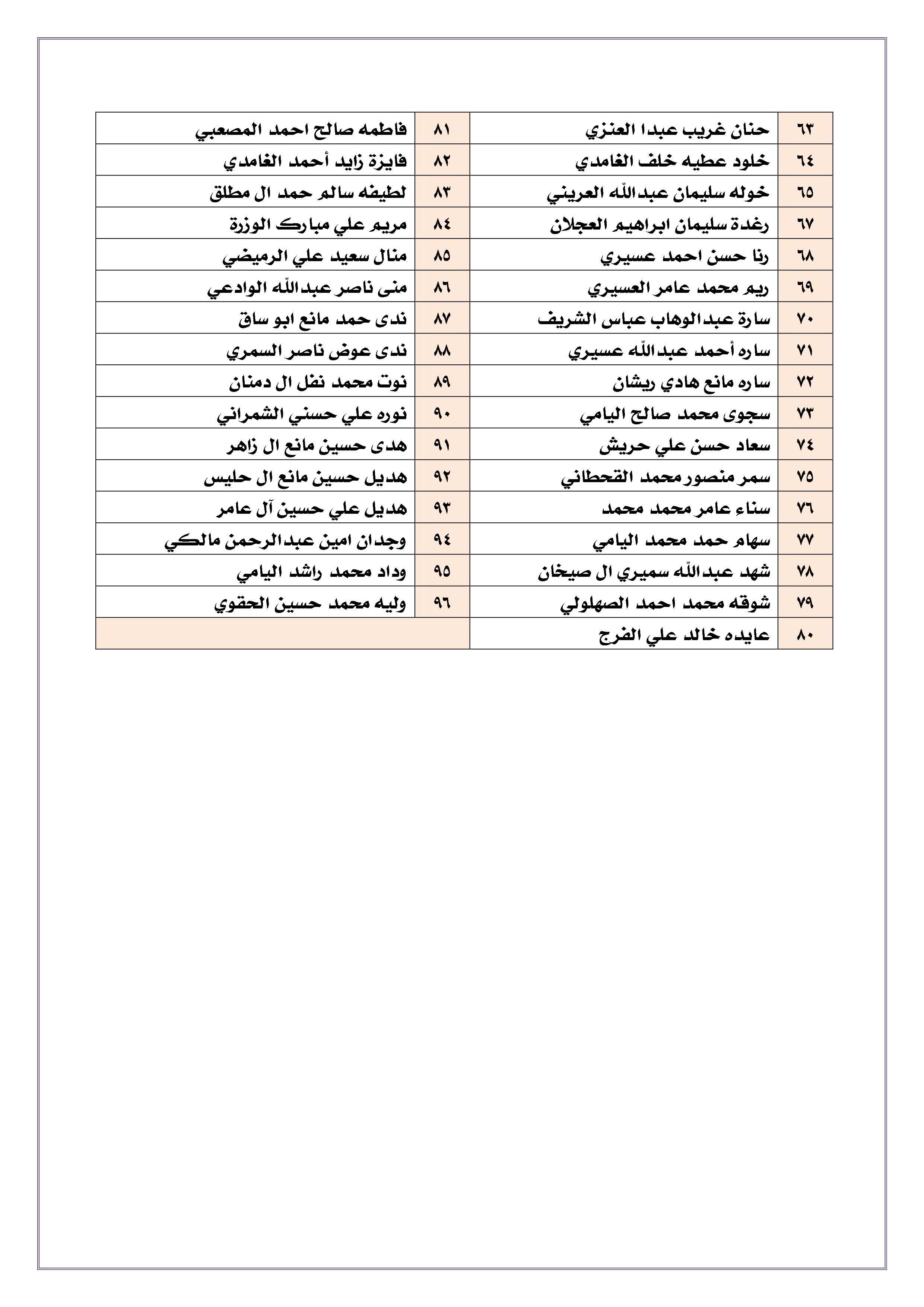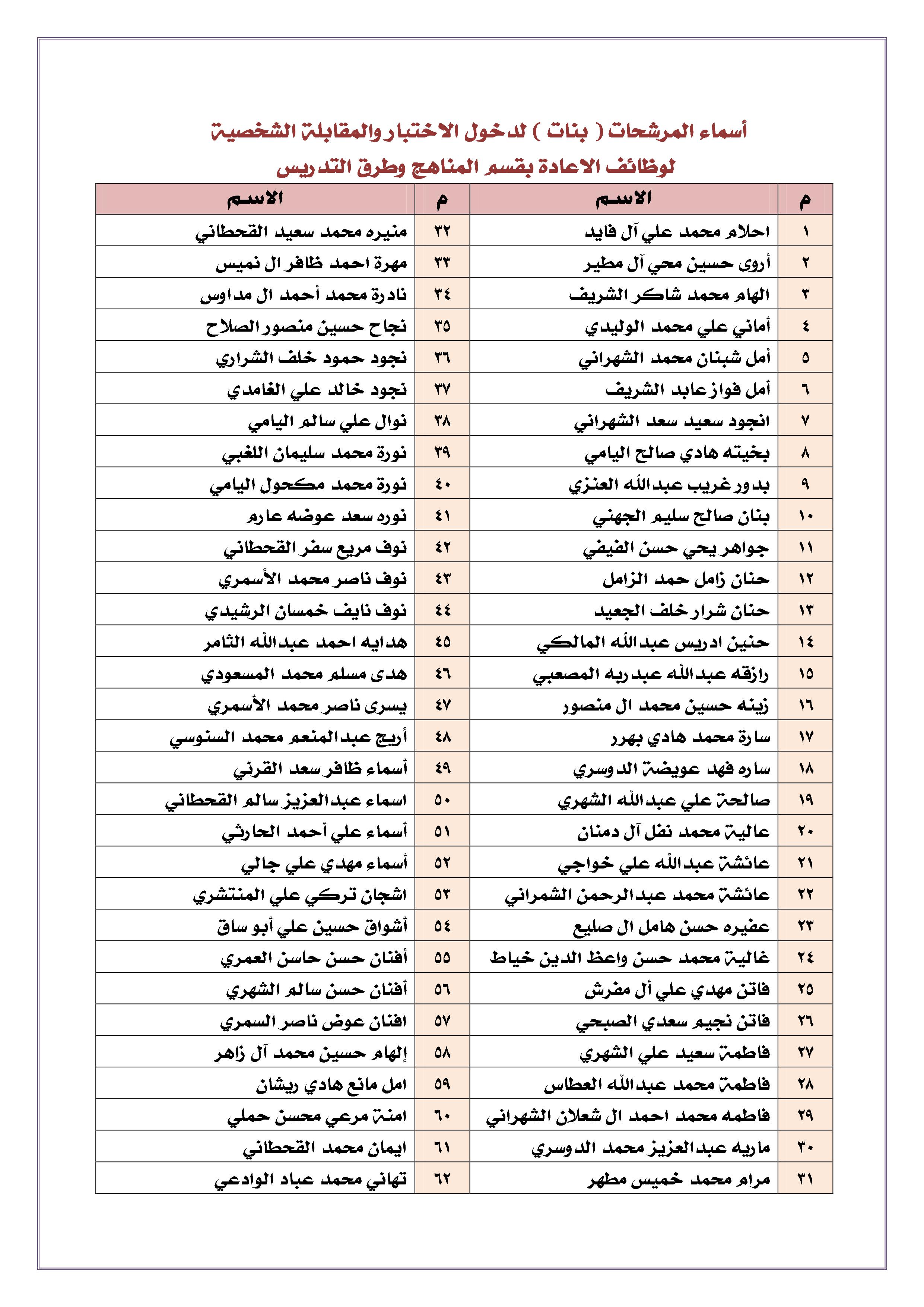 أسماء المرشحين (بنات) لقسم المناهج وطرق التدريس